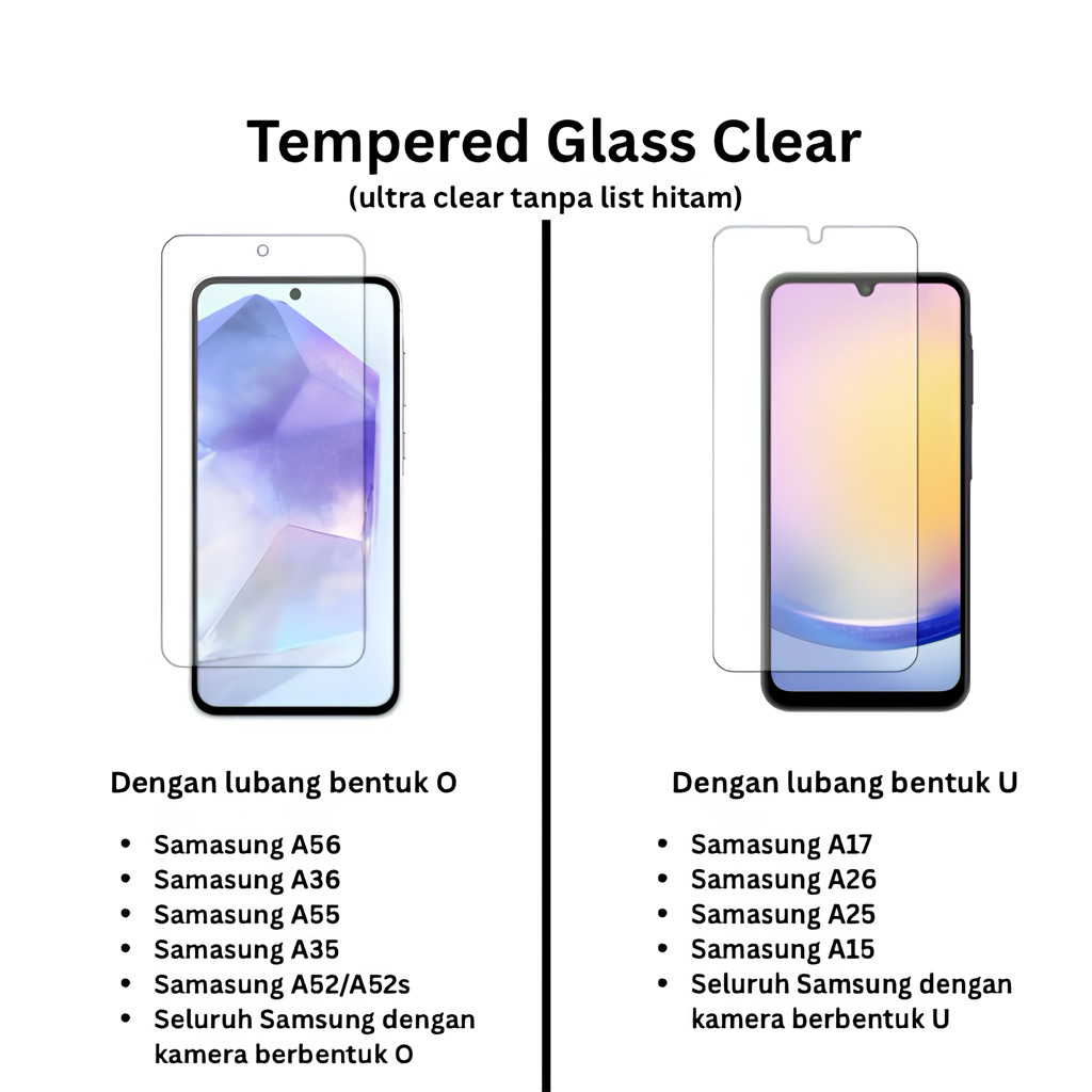 Premium Tempered Glass Samsung Galaxy A56 A36 A26 A16 A06 A55 A35 A25 A15 A54 A34 A24 A14 A53 A33 A23 A13 A52 A32 A22 A12 A51 5G 4G - Premium Anti Gores Layar Dengan Lubang Kamera