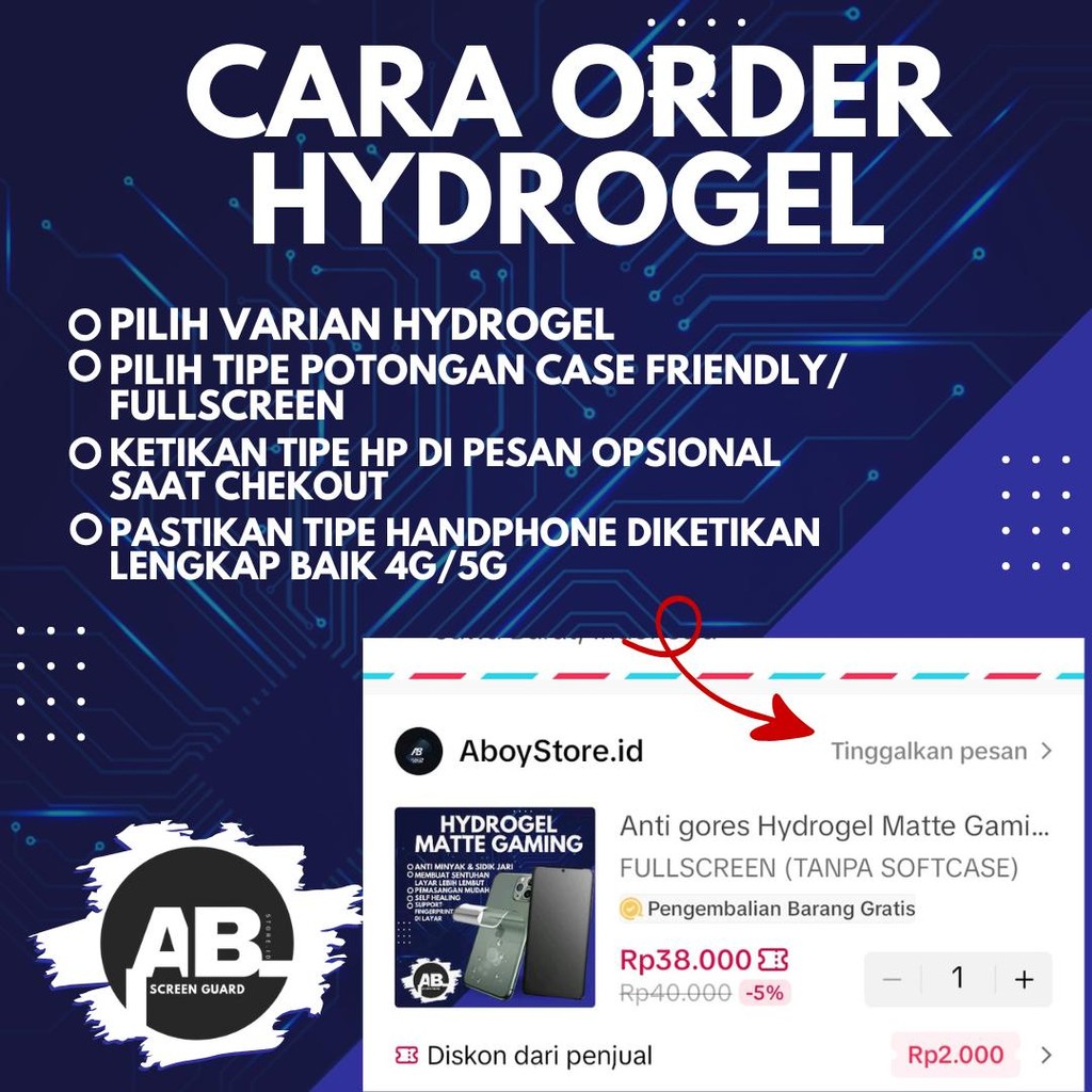 Anti gores Hydrogel Clear HD Untuk Semua Tipe Handphone Promo Buy 1 Get 1 Free Hydrogel Clear Hd