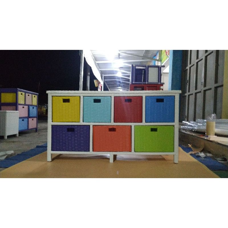 (Ready Stok)Rak Laci Rotan Sintetis 7 Laci Samping