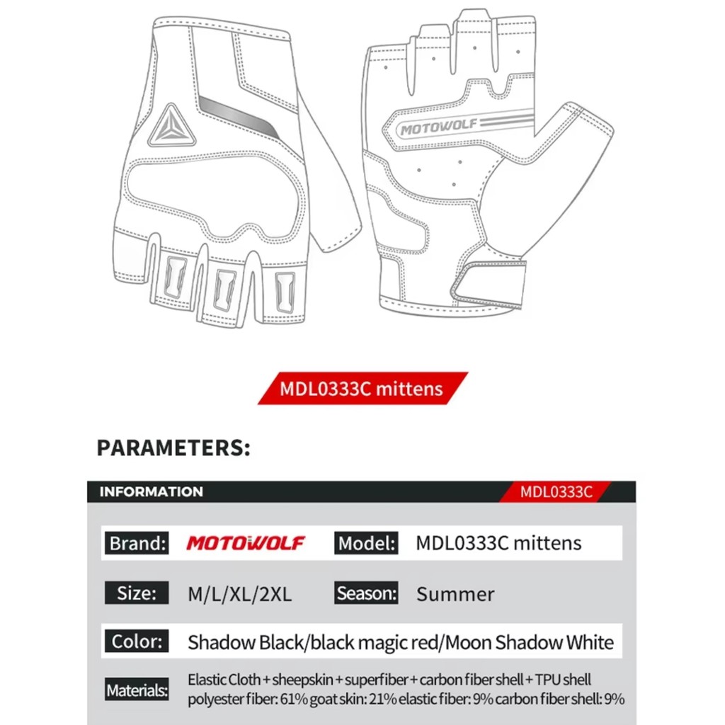 Motowolf MDL0333C Sarung Tangan Sepeda Motor Racing Half Finger Protector Motorcycle Gloves