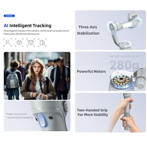 Takara IMMOVA M01 3-Axis Smart Tracking Gimbal Stabilizer with LED Fill Light for Smartphone