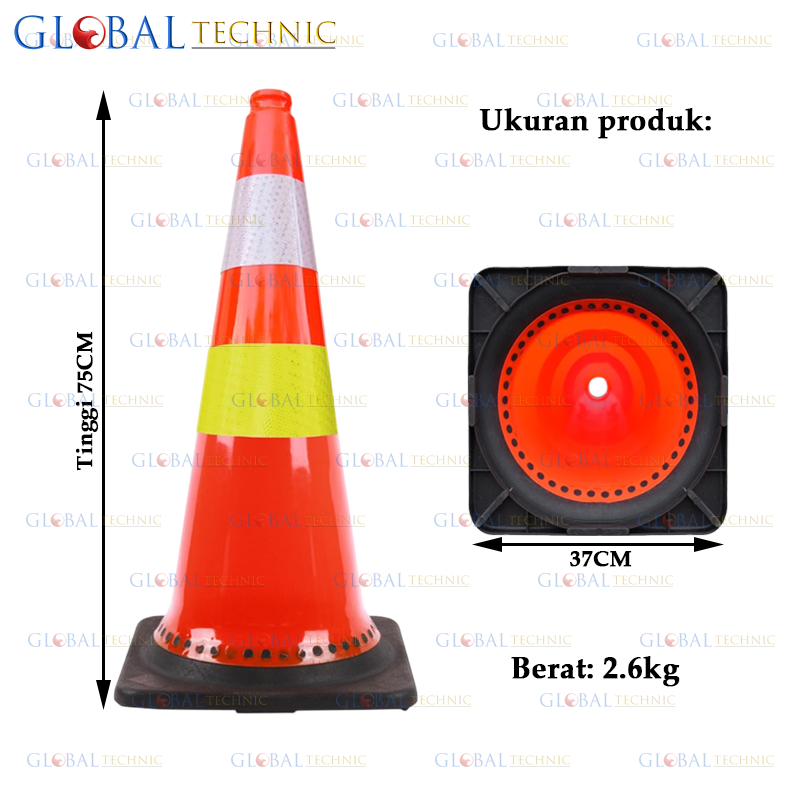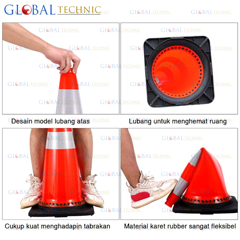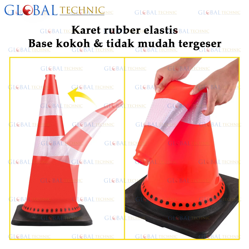 Safety Traffic Cone 75CM Rubber Kerucut Lalu Lintas Karet Rubber Base Hitam