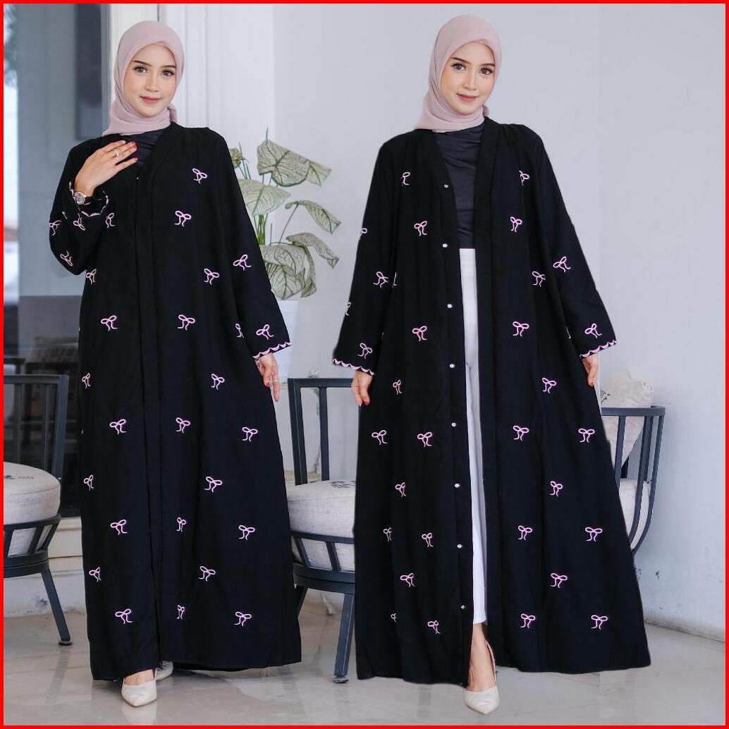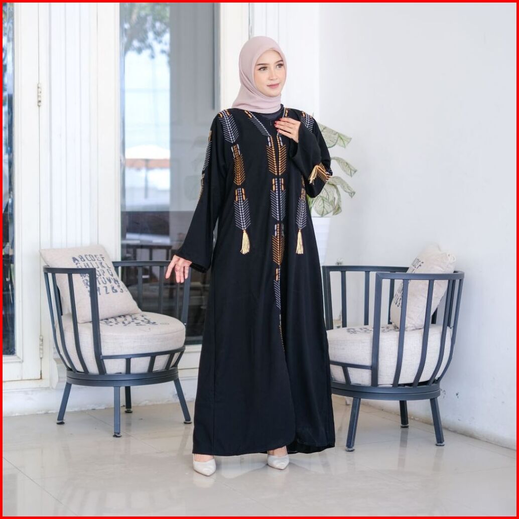Abaya Bordir Turkey Exclucive Gamis Haji Dan Umroh Bahan Jetblack Premium Hitamnya Pekat