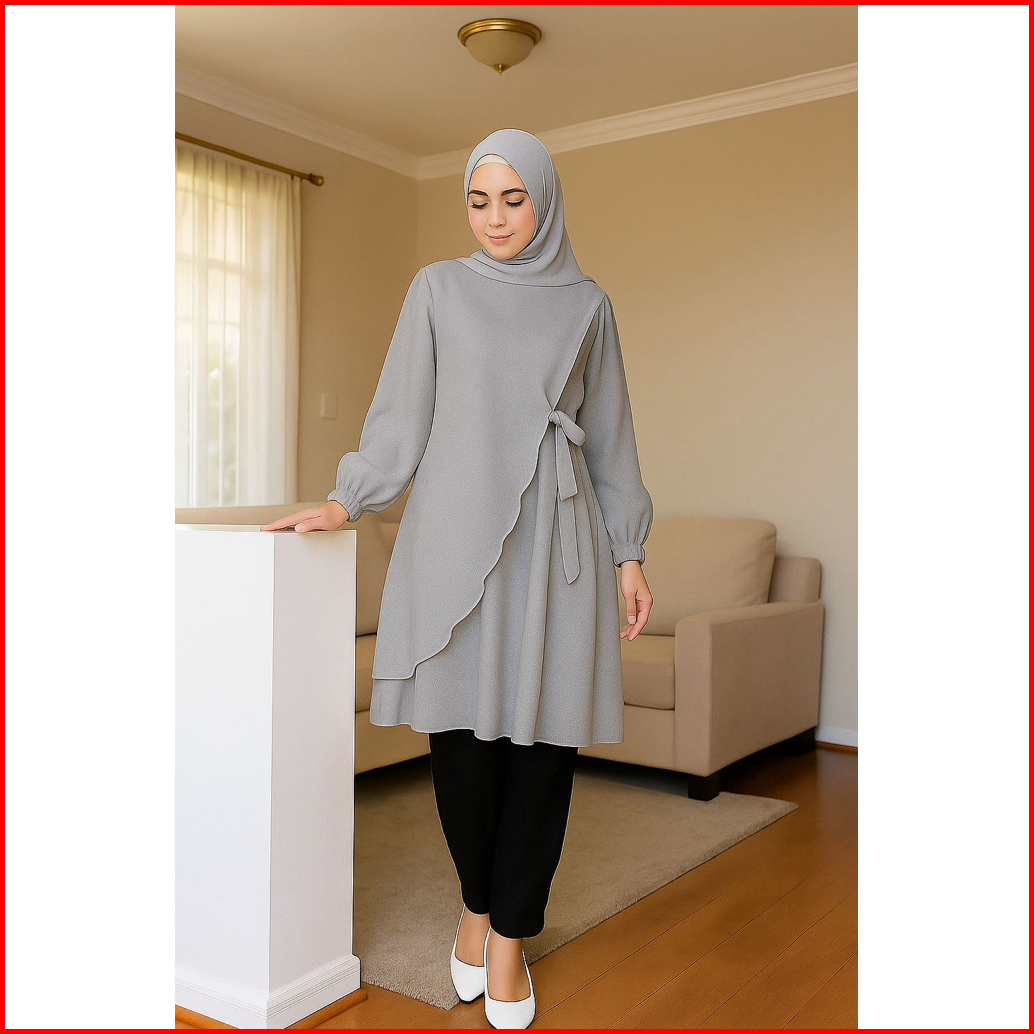 Atasan Wanita Tunik Terbaru 2025 Bahan Cringkle Premium Tunik Demin