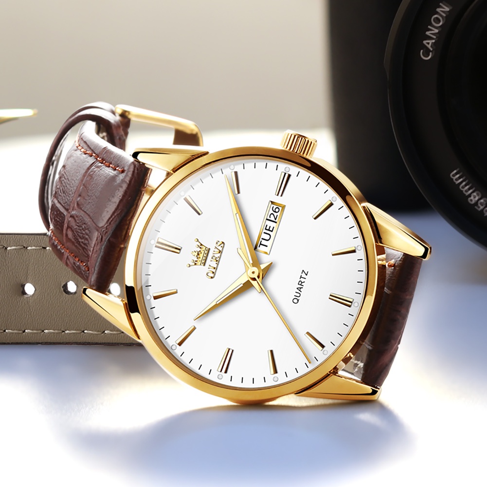 OLEVS Jam Tangan Pria Original Anti Air Tahan Kulit Analog Men Watch Hitam Putih Biru