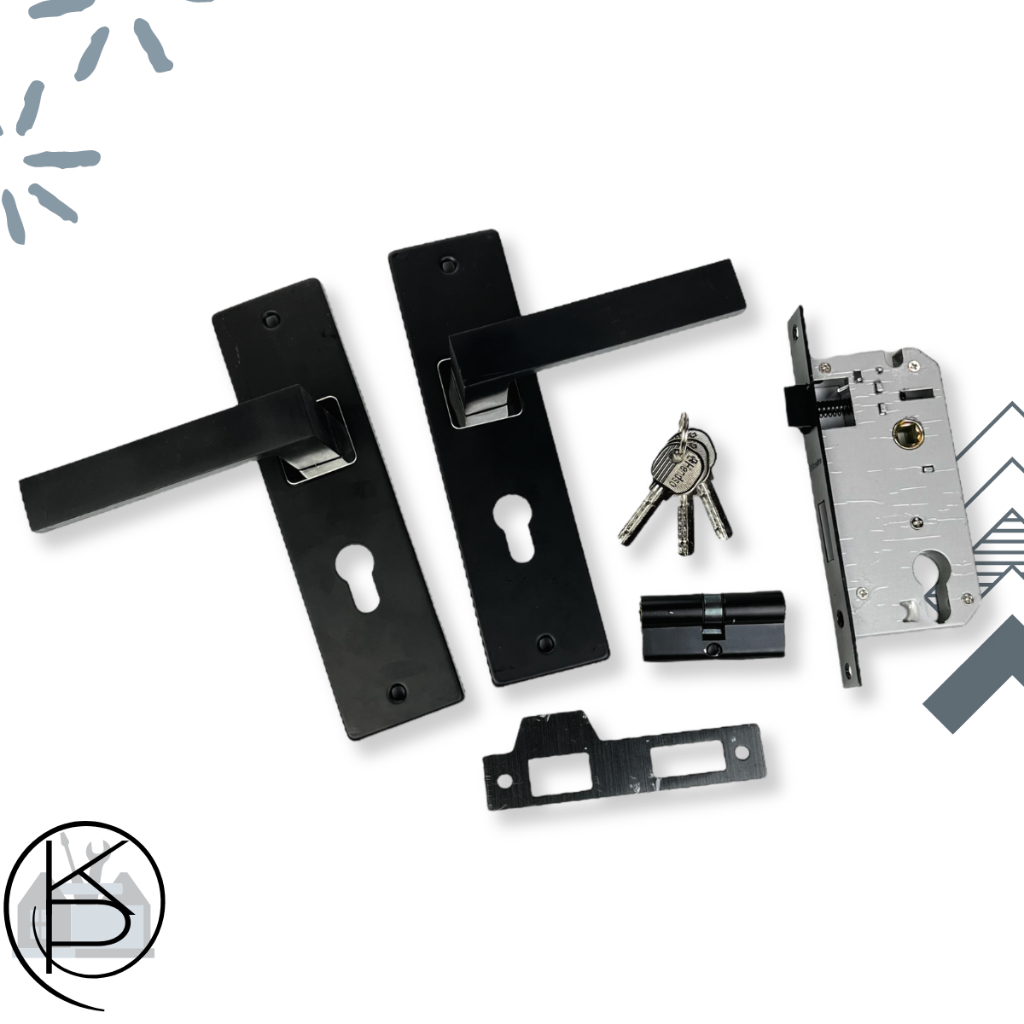 Gagang Pintu Handle Kunci Pintu Set Ukuran Tanggung Hitam Pegangan Pintu Kunci Kamar Set Medium Handle Pintu Rumah Kamar Full Set Komplit