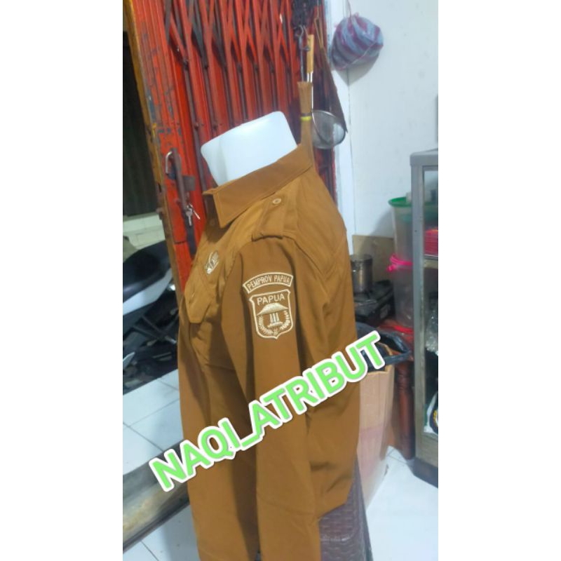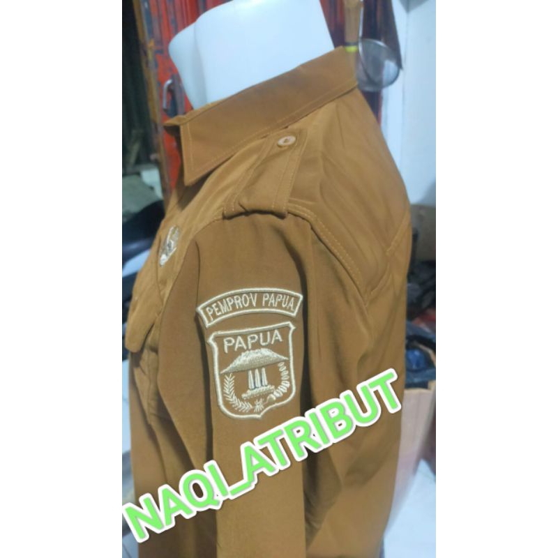 SETELAN SERAGAM PNS SERAGAM DINAS PEMDA KHAKI LENGAN PANJANG BORDIR TIMBUL BISA COSTUM LOGO DAN NAMA