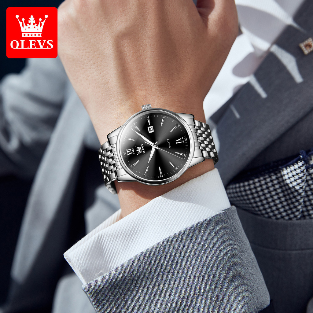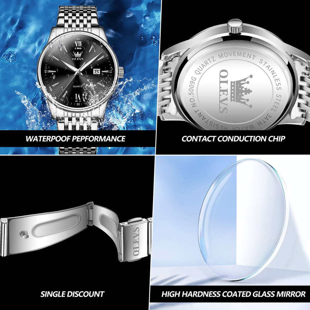 OLEVS Jam Tangan Cowok Anti Air Stainless Steel Strap Arloji Pria Original 100% Analog Quartz Classic Design 5009