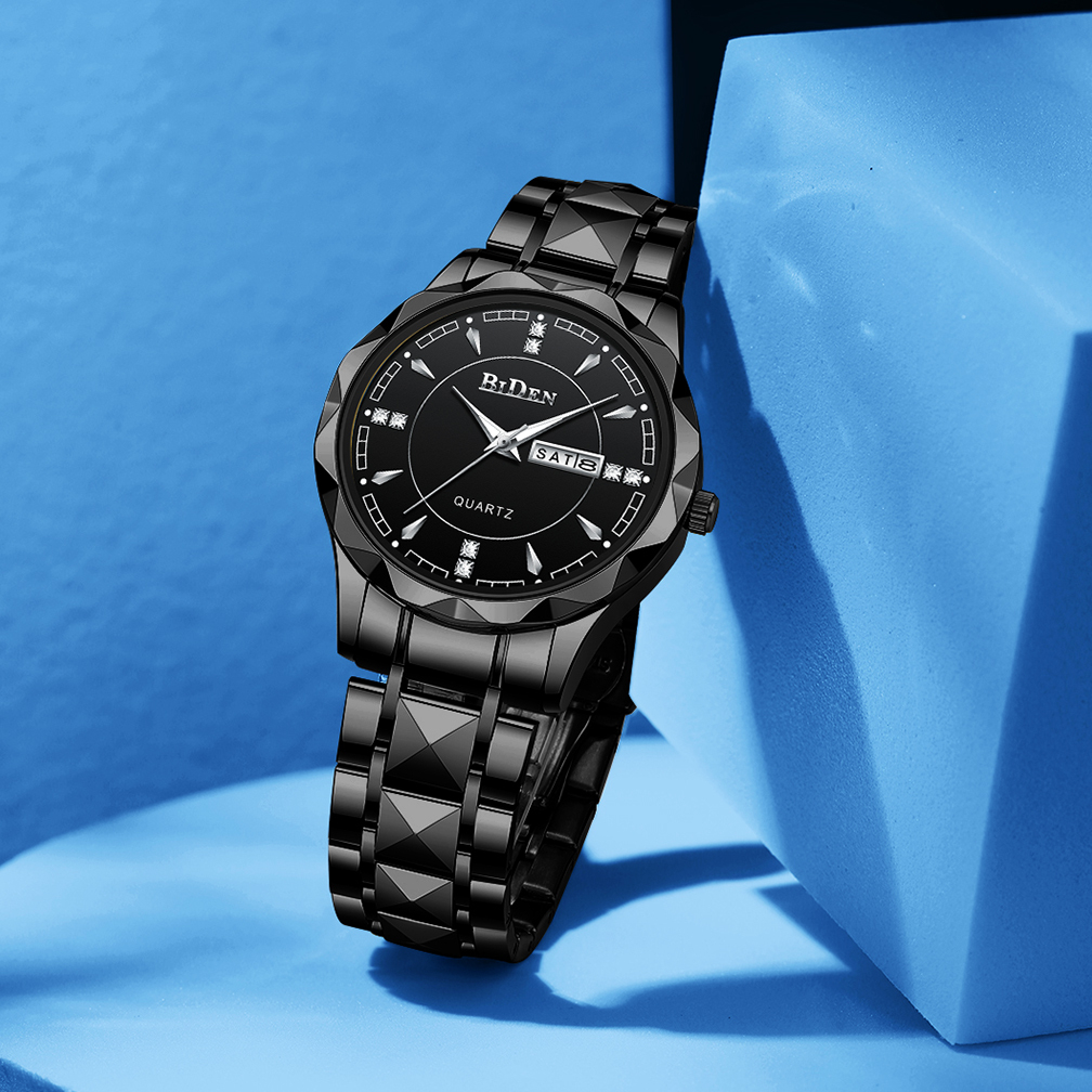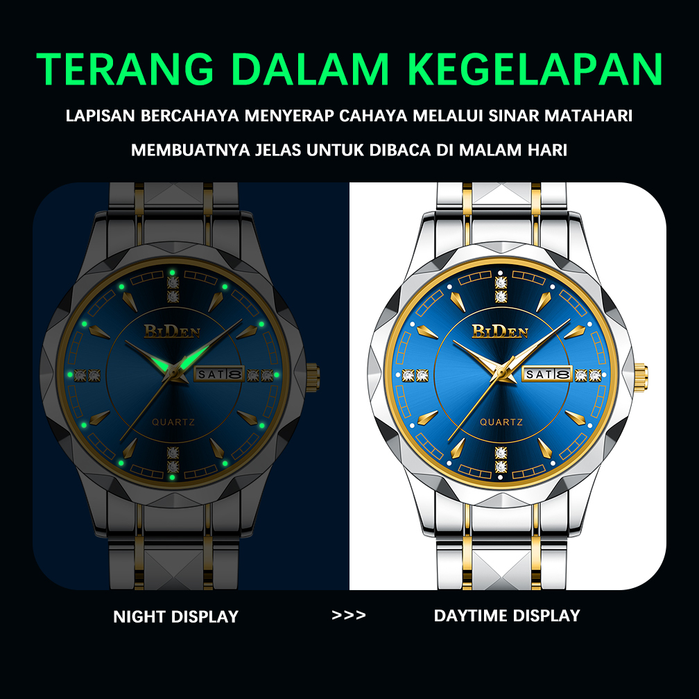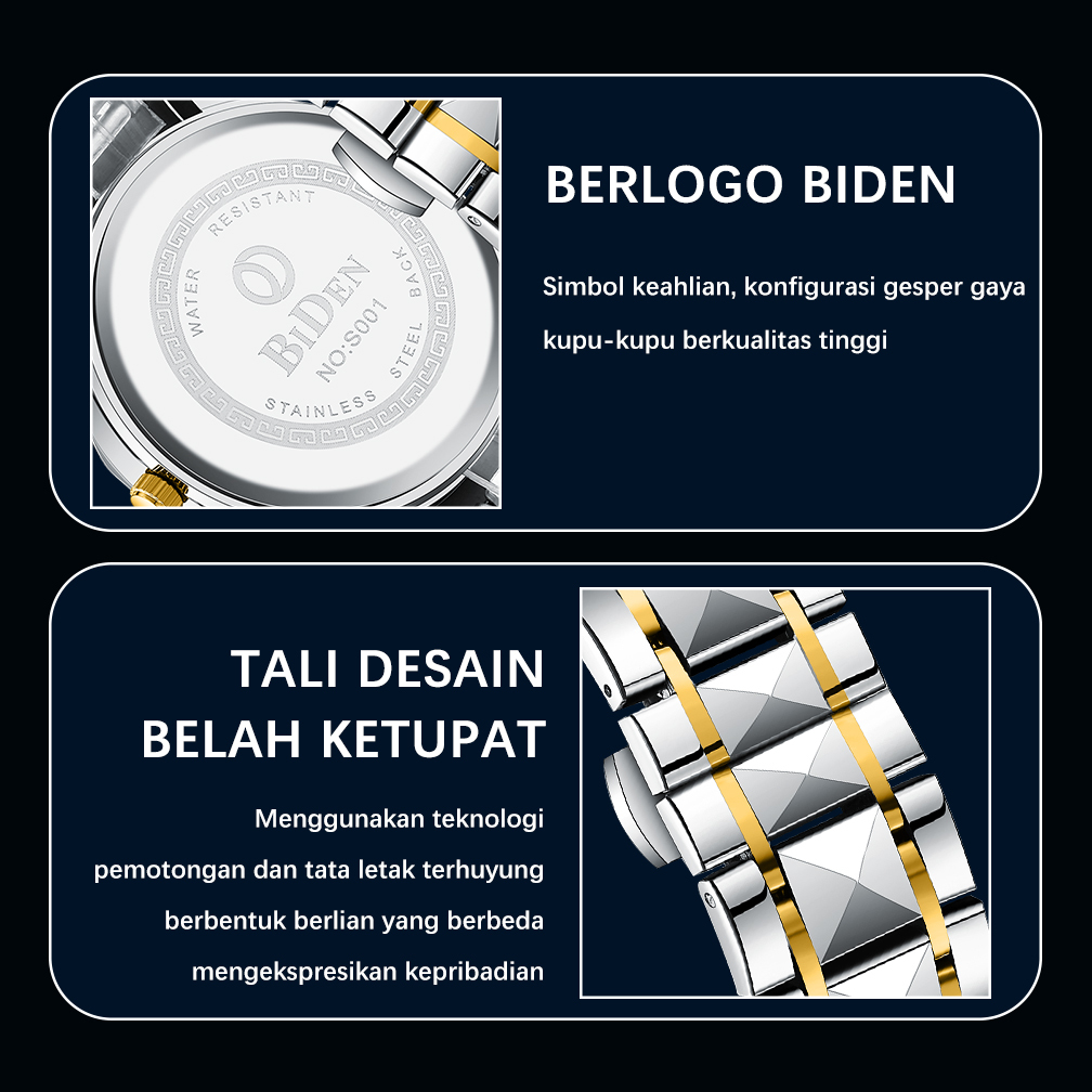 BIDEN Jam Tangan Pria Anti Air Original Kalender Kuarsa Classic Fashion Tali Stainless Steel Jam Tangan Cowok