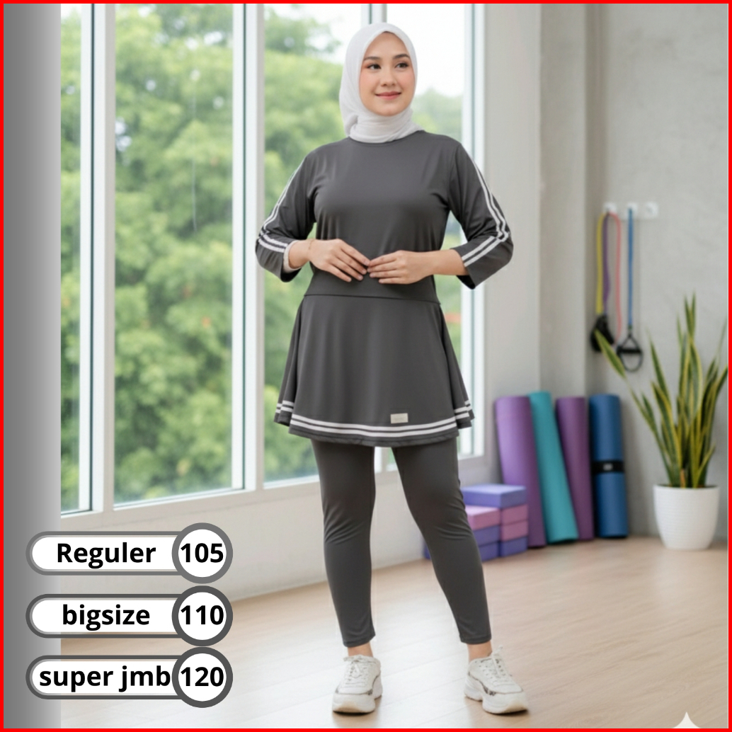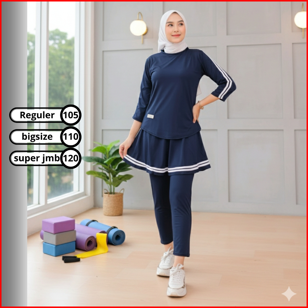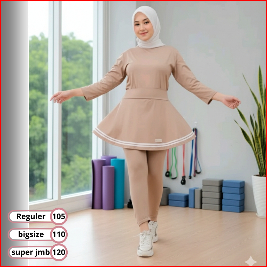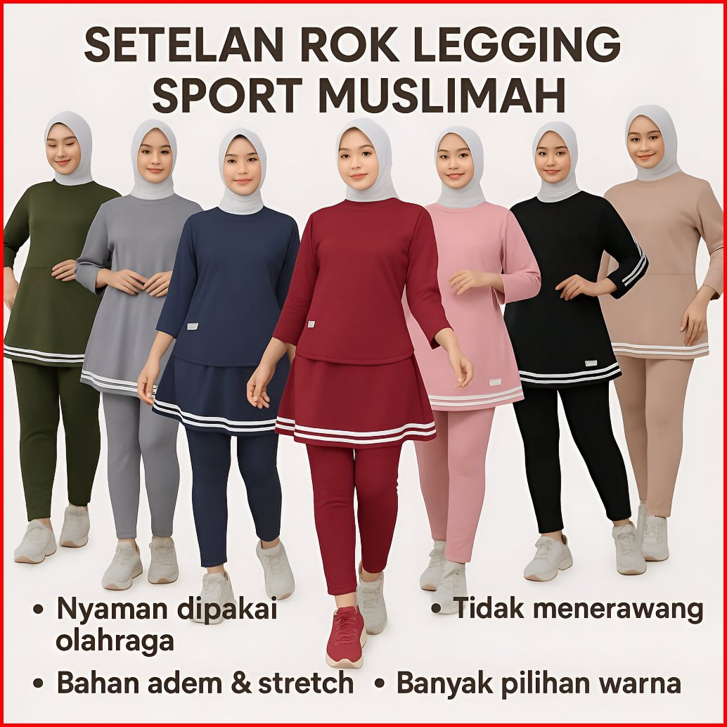 Set Zumba Olahraga Wanita Setelan Legging Rok Senam Muslimah Sportwear Gym Yoga Tenis Sepeda
