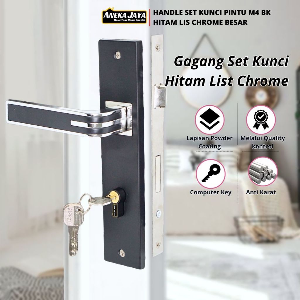 Kunci Pintu Rumah Hitam Black List Chrome Tipe Morris Premium Handle Komplit Ukuran Tanggung Besar