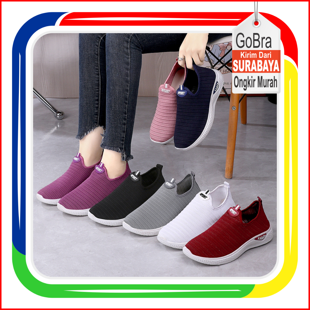 Gobra Sep104 Tanpa Kotak Sepatu Sneakers Wanita Tanpa Tali Alas Bawah Tapak Putih 7 Pilihan Warna Size 36-40 Polos Simpl