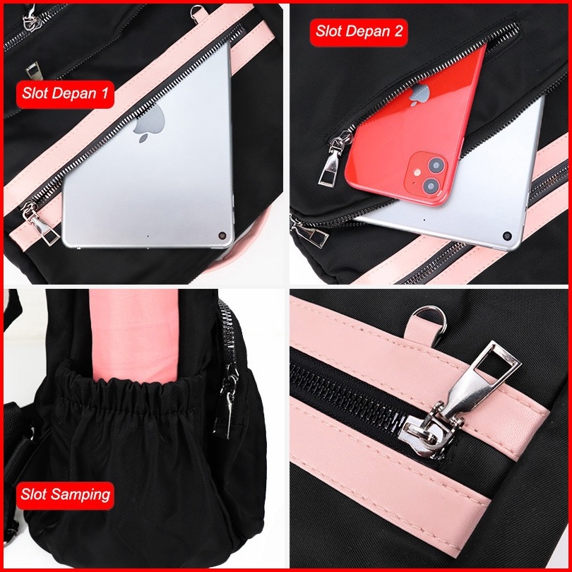 Peonia Pna Elena Pom Water Resistant Tas Ransel Wanita Import Korean Style Besar Punggung Kantor Kerja Sekolah Kuliah Ou