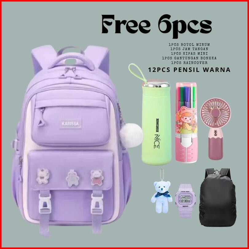 6 In 1 Tas Fashion Ransel Wanita Sekolah Sd Smp Remaja Banyak Bonus Motif Karissa Ransel Anak Perempuan Kapasitas Besar