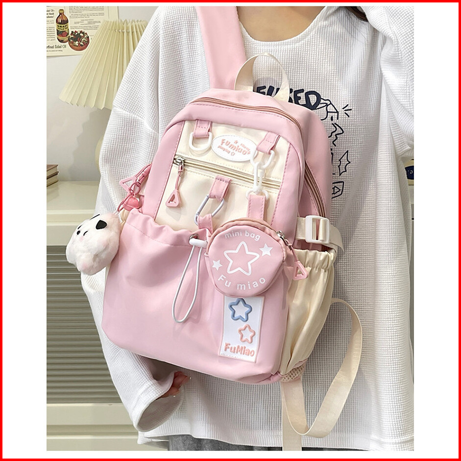 Tas Sekolah Ins Wanita Lucu Tas Ransel Serut Siswa Perempuan Volume Tinggi Tas Bahu Kapasitas Besar Korea Tas Ransel Wan