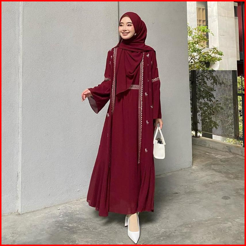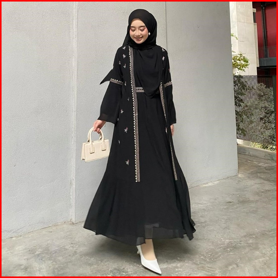 Nyd - Safwa Abaya Dress Katun Motif Salur Ceruty Babydoll Aplikasi Bordir Cantik Wanita Terbaru Kondangan Simpel Elegan