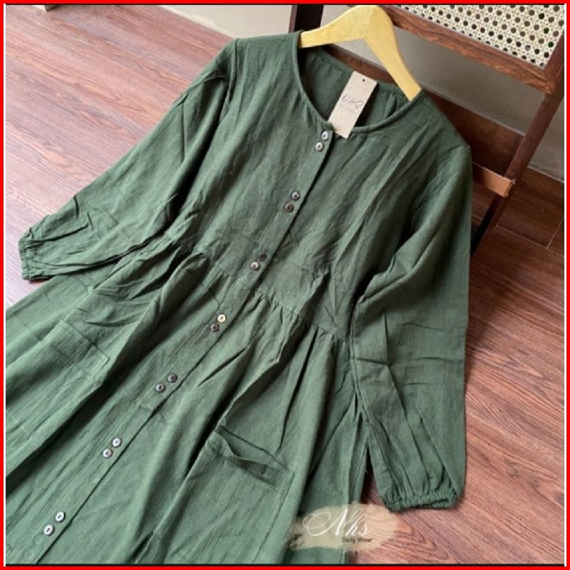 Azzura Dress Bahan Linen Ramy Polos Full Kancing Dress Kondangan Terbaru