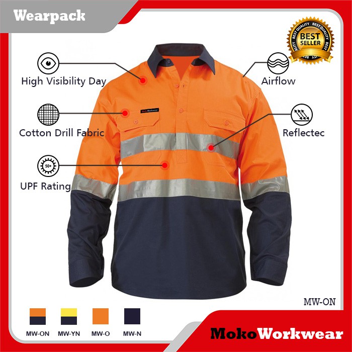 KEMEJA SAFETY KERJA / SERAGAM WEARPACK LAPANGAN / BAJU SAFETY KOMBINASI ORANGE BIRU DONGKER NAVY
