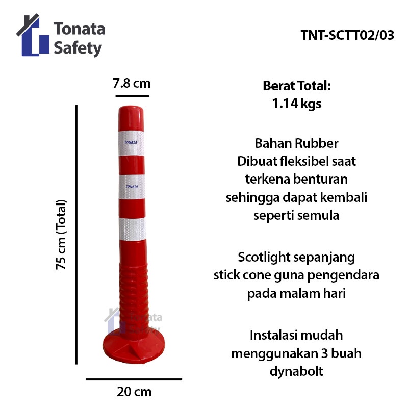 Tonata Stick Cone T Top Bollard Rubber Pembatas Jalan