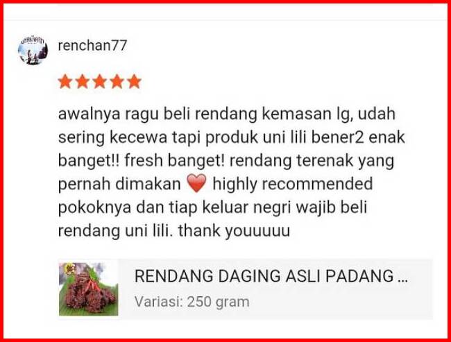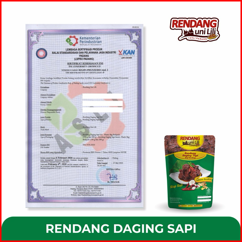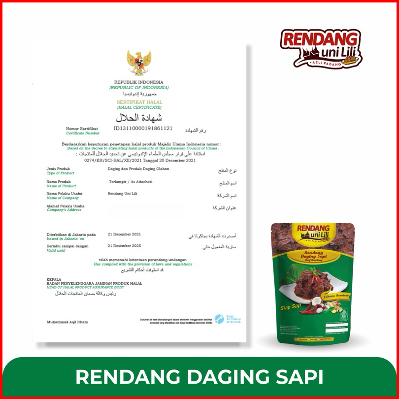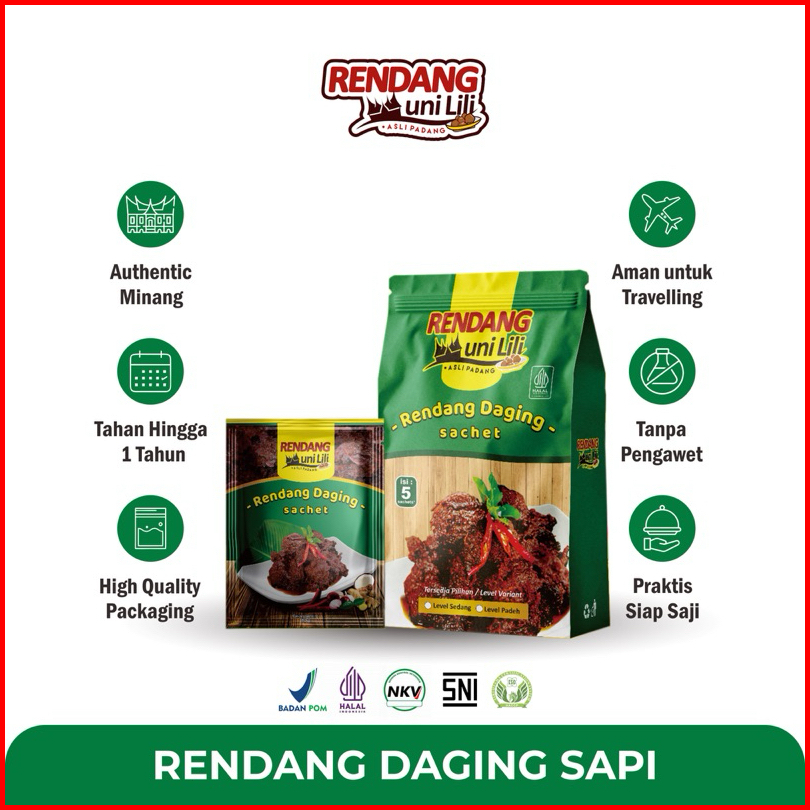 Rendang Uni Lili - Rendang Daging 250 Gr Asli Padang Md Bpom Halal Mui Sni
