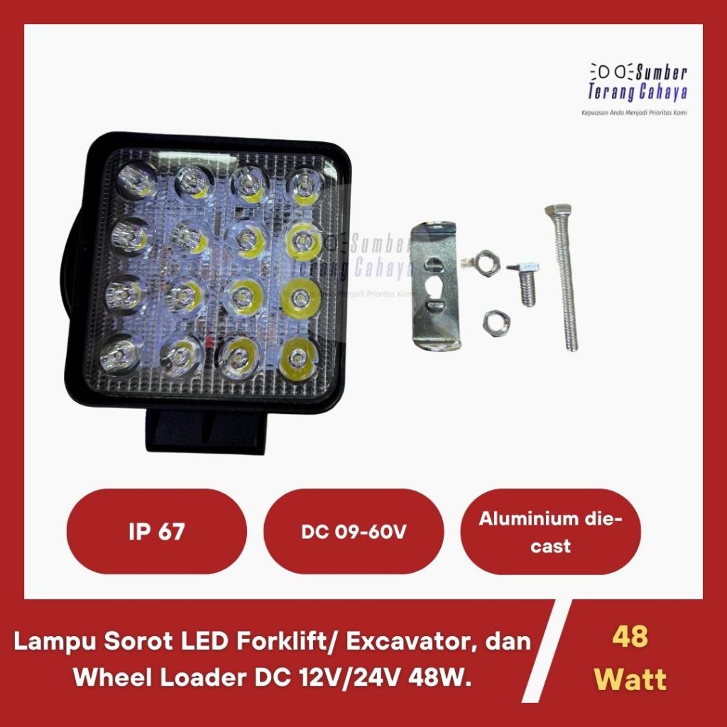 Lampu Sorot LED Forklift/ Excavator, dan Wheel Loader DC 12V/24V 48W