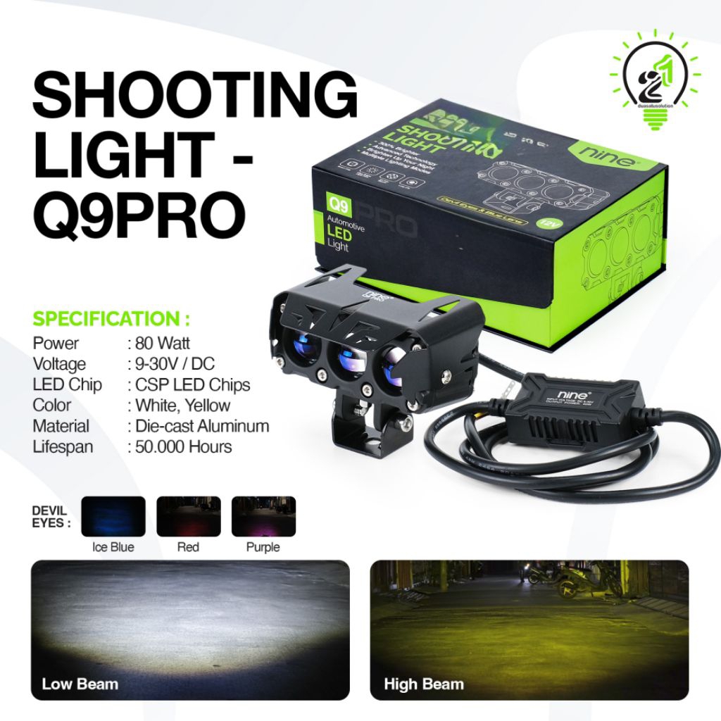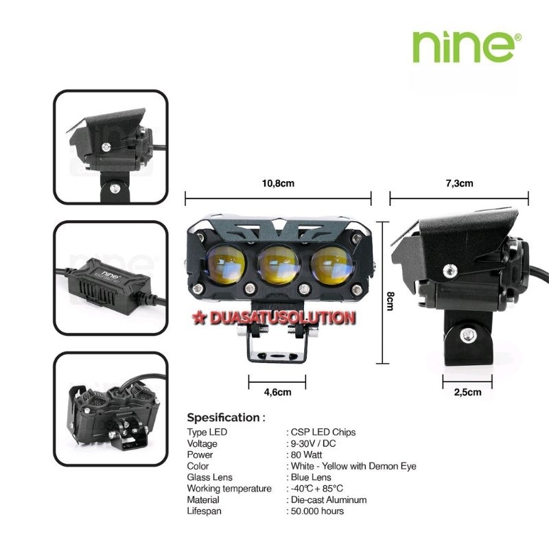 LAMPU LED SOROT 3 MATA PUTIH KUNING ORIGINAL NINE LUXIMOS Q9PRO 80WATT BLUE LENS