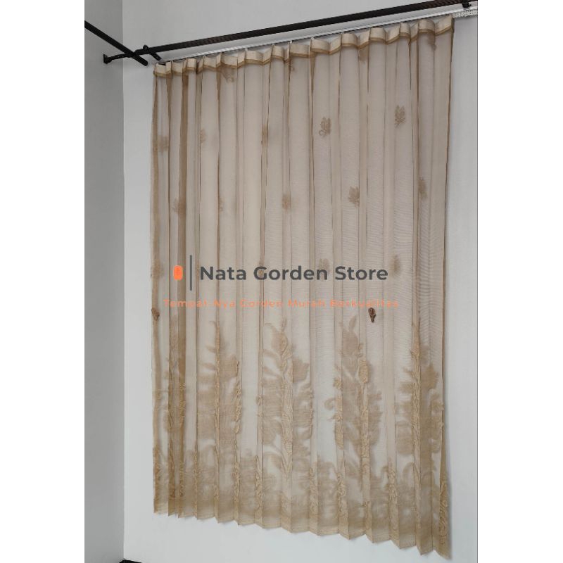 Gorden hordeng vitrase motip bunga tulip warna cokelat model minimalis classic Murah Gratis Ongkir
