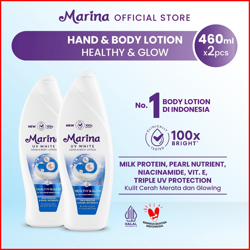 Marina Hand Body Lotion Uv White - Healthy Glow 460 Ml 2 Pcs - Exp 09.2027