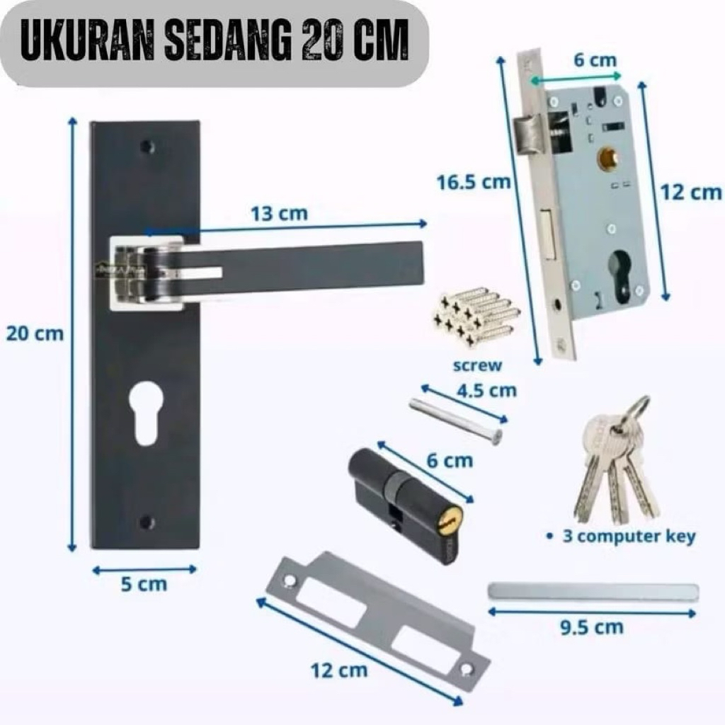 HENDSO Kunci Pintu Rumah Set Full Gagang Pintu Rumah Fuull Set Tinggal Pasang Tersedia Ukuran Tanggung 20 cm Besar 25 cm