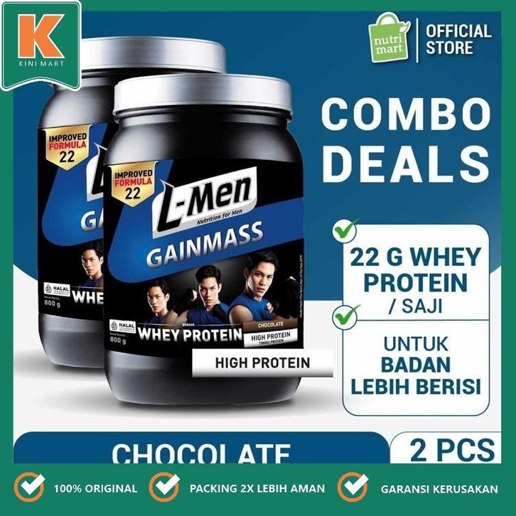 Twin Pack : L-Men Gain Mass Chocolate 800 gram-1,7lbs- 22g Whey Protein - 10 ServingKINI MART/KESEHATAN/SUPLEMEN/NUTRISI