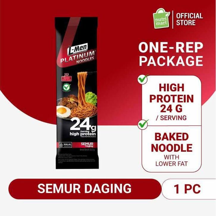 ONE-REP PACKAGE - L-Men Platinum Noodle Semur Daging dengan 24g protein / saji - Mie Instant Panggang tidak Digoreng/KIN