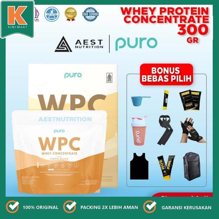 Puro WPC Whey Protein Concentrate 300 gram Susu Protein Suplemen Fitness/KINI MART/CEMILAN/GROSIR/MURAH/SNACK/HAMPERS