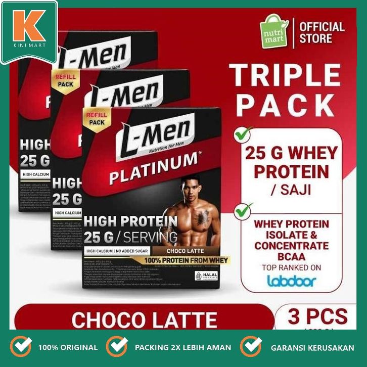L-Men Platinum Refill Choco Latte 5,3 lbs / 2,4 kg - Kemasan Refill Suplemen Fitness Tinggi Protein (3 Box 800gr)/KINI M
