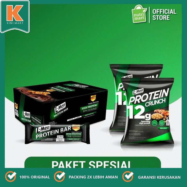 PAKET SNACK FITNESS - L-Men Protein Bar Chocolate (12 Sachet) + L-Men Protein Crunch BBQ Beef (2 pcs)/KINI MART/CEMILAN/
