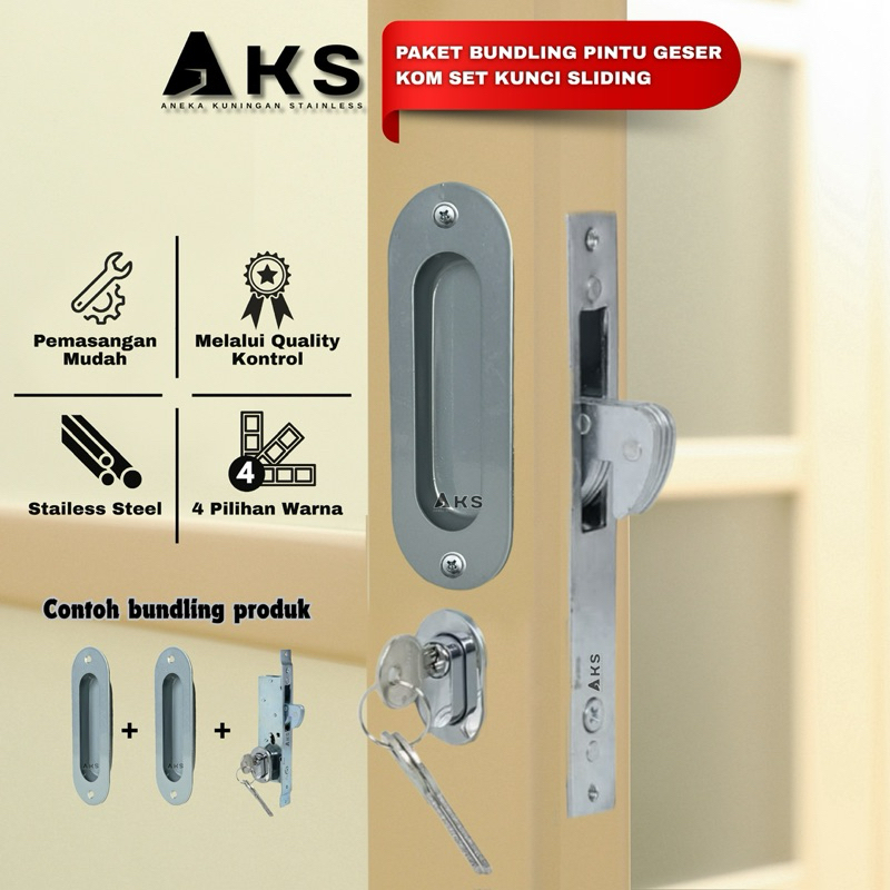 Paket Handle Kunci Tarikan Pintu Sliding Alumunium Kayu Geser Model Oval dan Kotak Warna Silver Hitam Coklat Putih