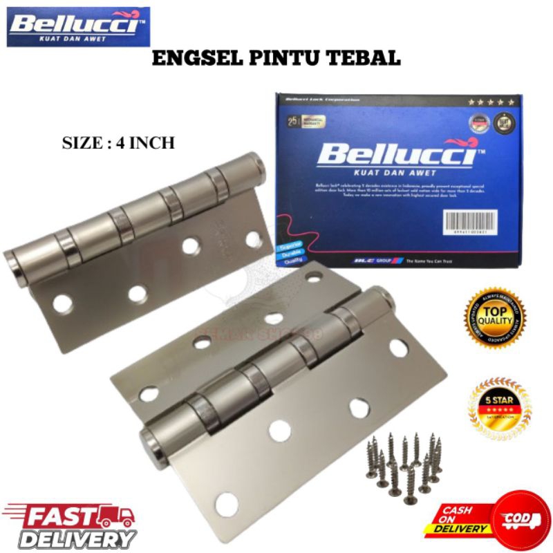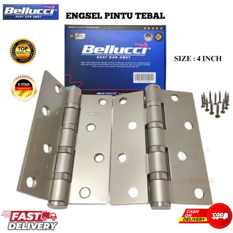 Bellucci Engsel Pintu Tebal 4" Inch x 3mm Jendela Rumah Kamar Lemari Stainless Steel Silver Engsel 4