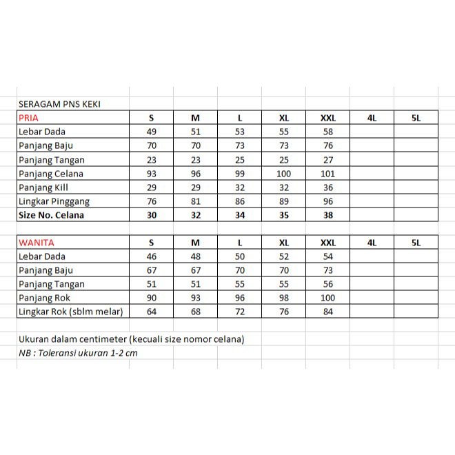 Seragam PNS keki/khaky