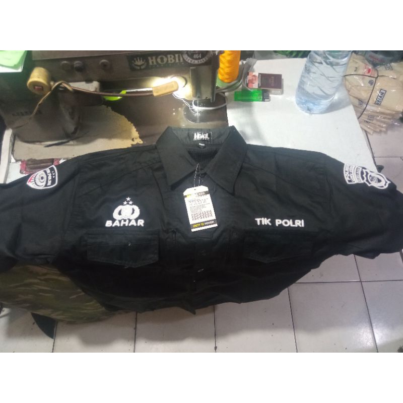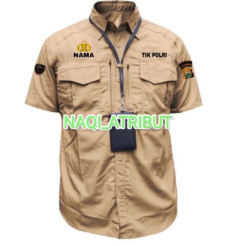 KEMEJA TACTICAL TIKI POLRI LENGAN PENDEK BORDIR TIMBUL BISA COSTUM