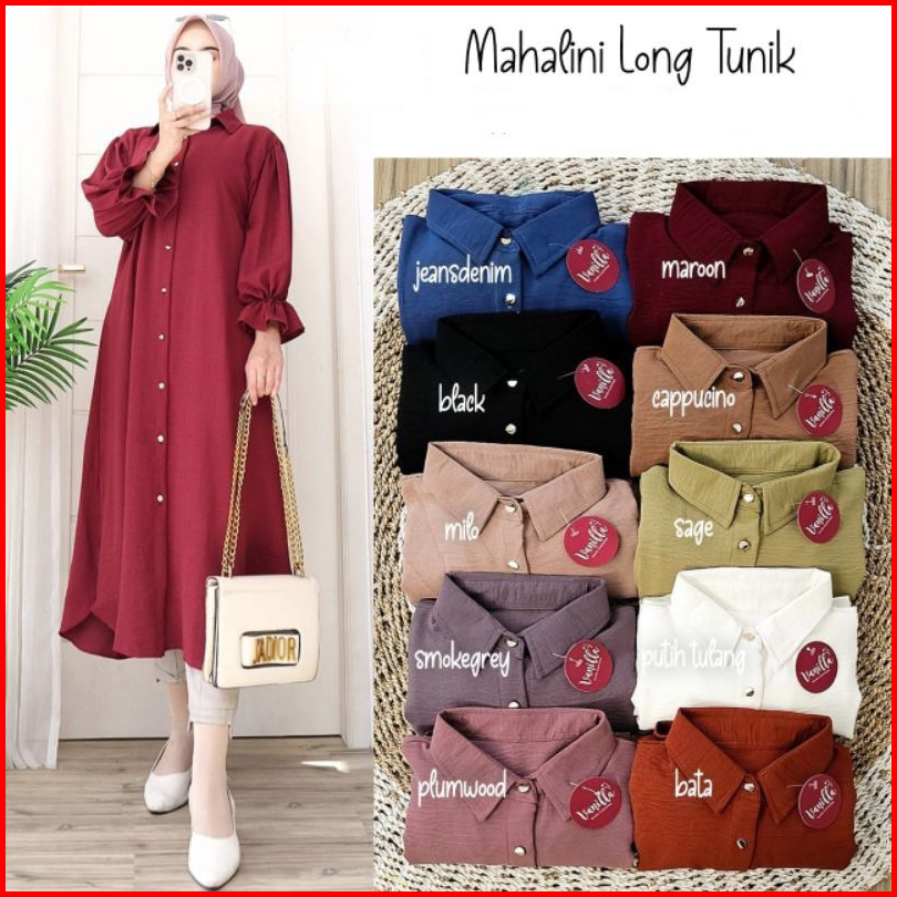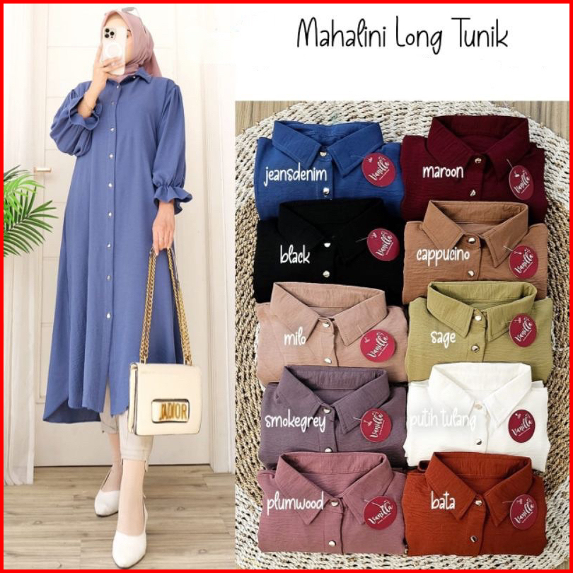 Mahalini Long Tunik Atasan Wanita Bahan Crinkle Airflow Busui Friendly
