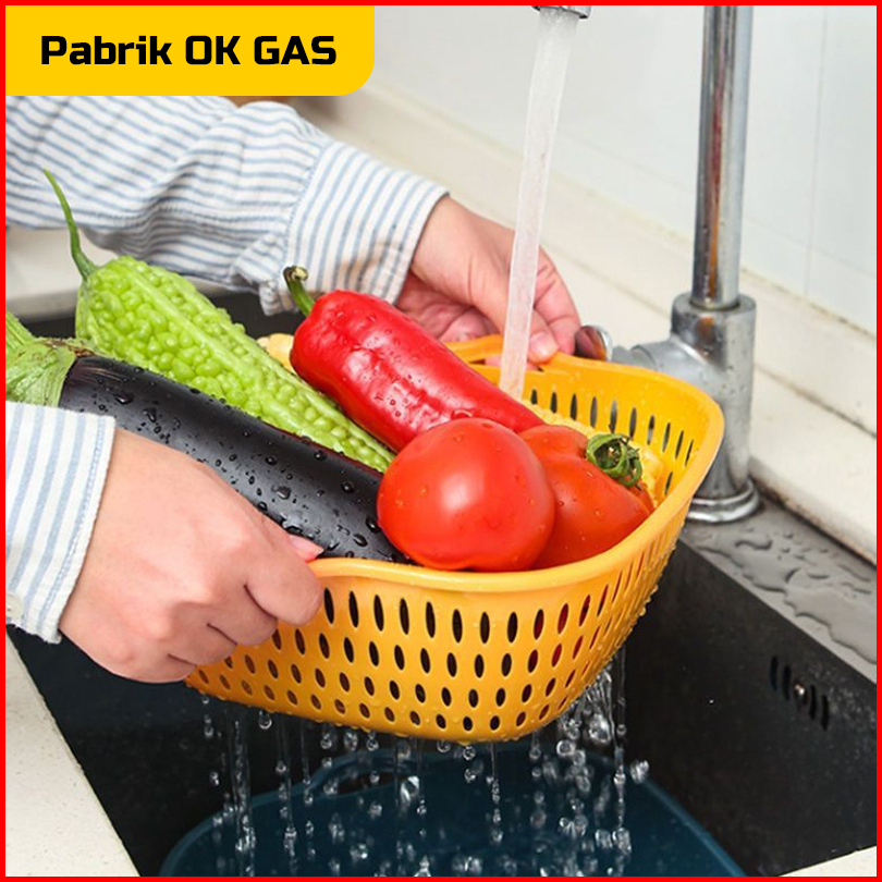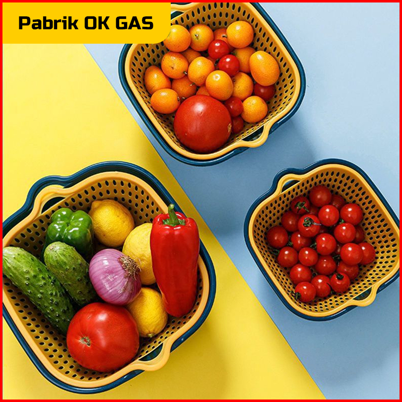 Pog - Baskom Tirisan Set 8 Pcs Plastik Wadah Cuci Sayuran Buah Multifungsi Keranjang Saringan Set