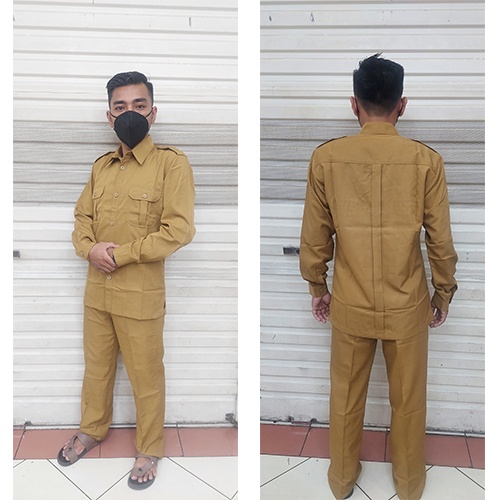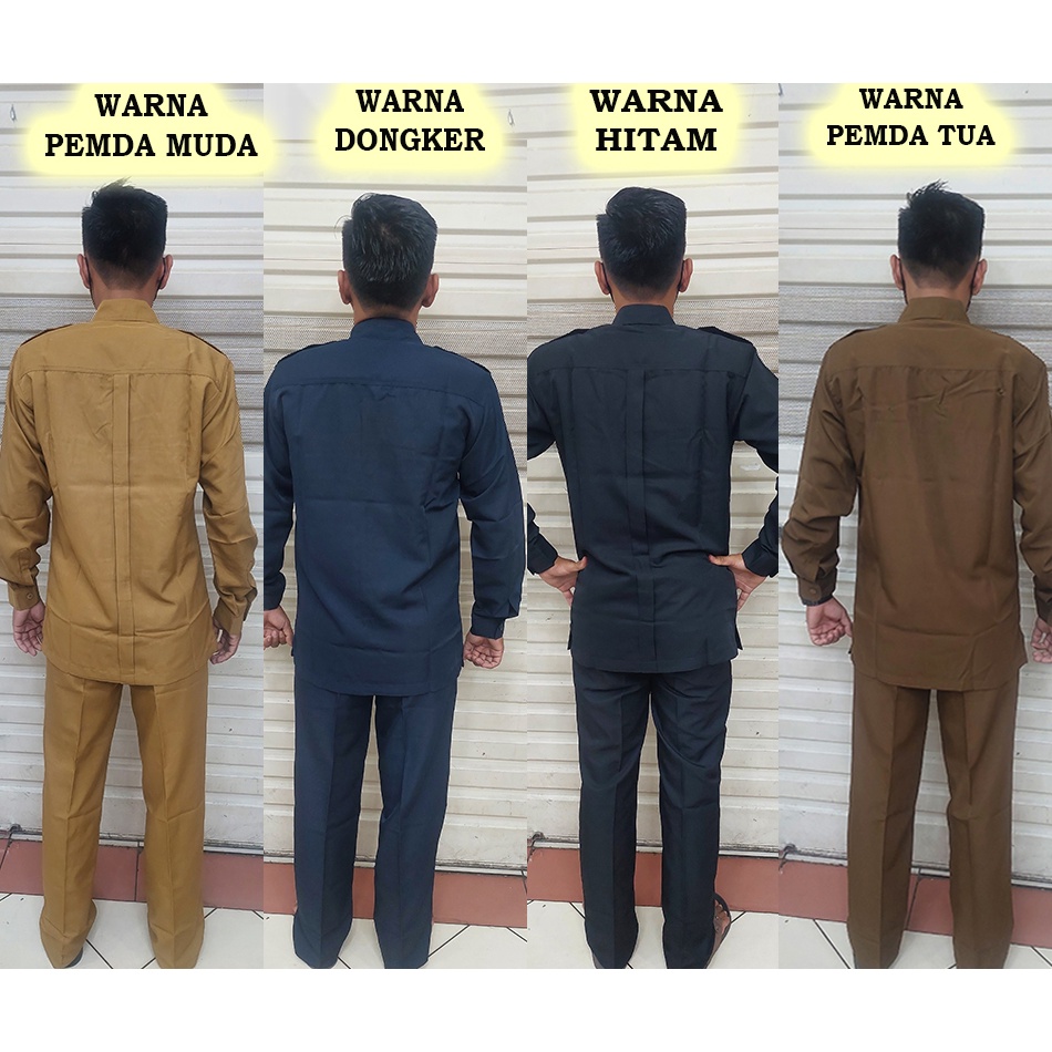 setelan baju dinas PDH laki-laki lengan panjang warna pemda tua-pemda muda-dongker-hitam ukuran dari S sampai 4L