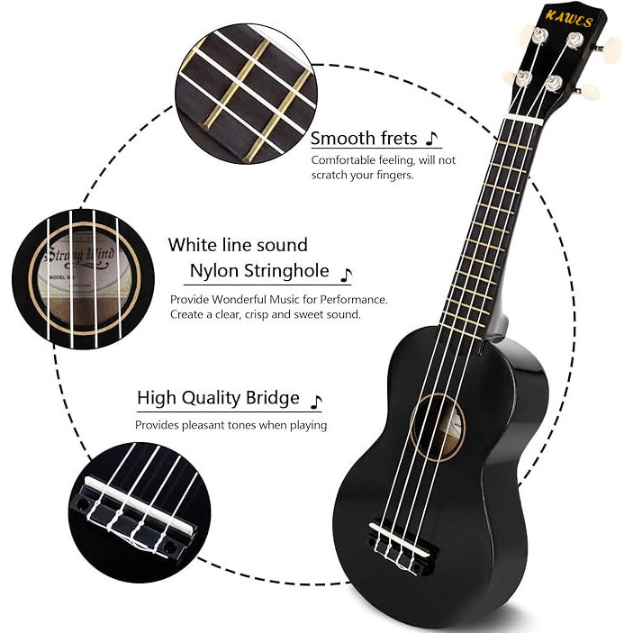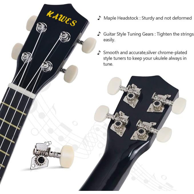 KAWES Gitar kecil Paket Gitar Ukulele Soprano 4 Senar Spruce Basswood 21 Inci Set tas dan aksesoris tuner atis