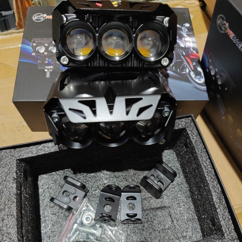 LAMPU SOROT SQL 3 MATA LED LASER kipas 2 warna Kuning Putih 12/80V MOBIL MOTOR TRUK/BUS