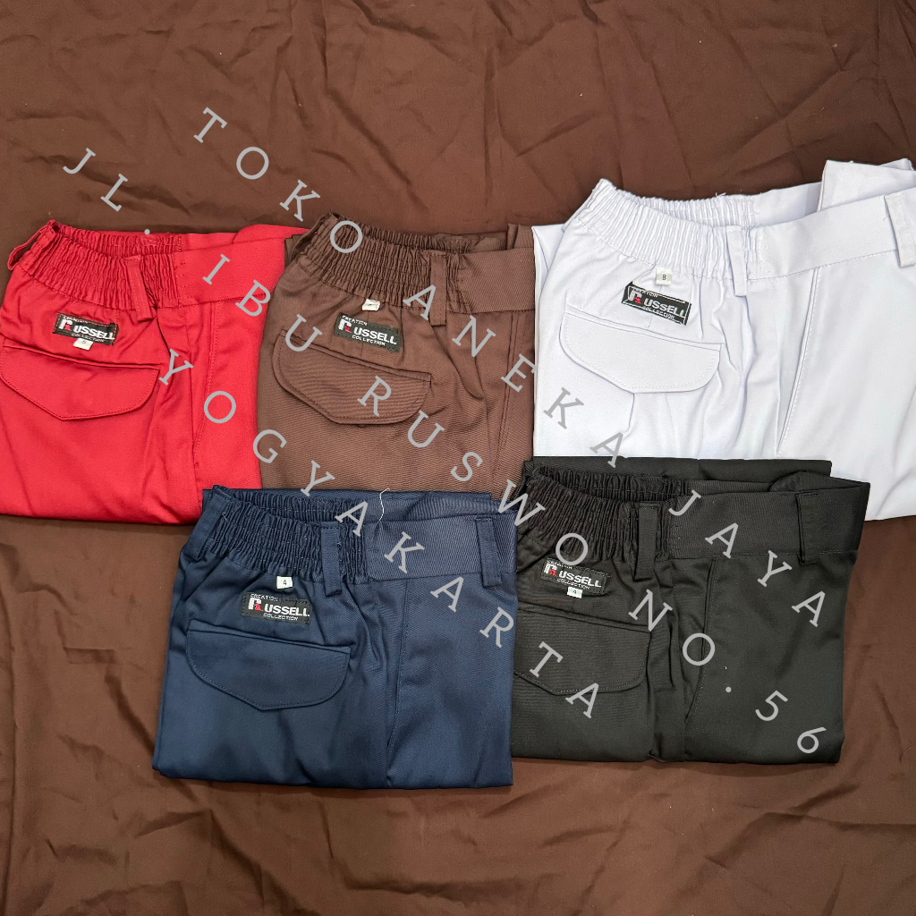 Celana Panjang Seragam Sekolah PDH SD SMP bahan UniOne Americal Drill Russell, Karet