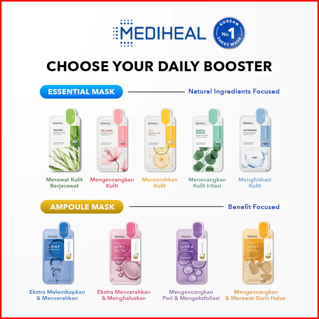 IPI Brightening, Vita Lightbeam, NMF Aquaring, Collagen Impact, MDH Teatree Care, MDH The E.G.T Mask, MDH Madecassoside, H.P.A Glowing Mask