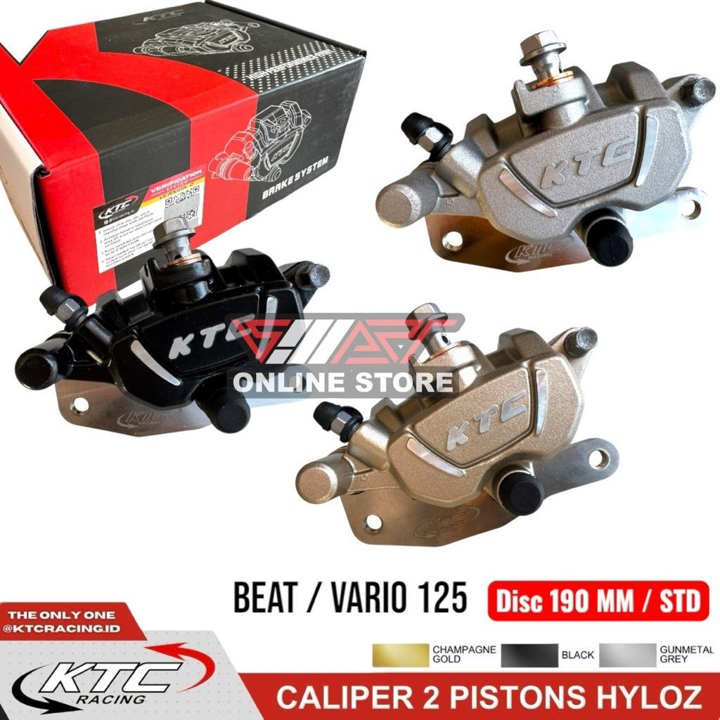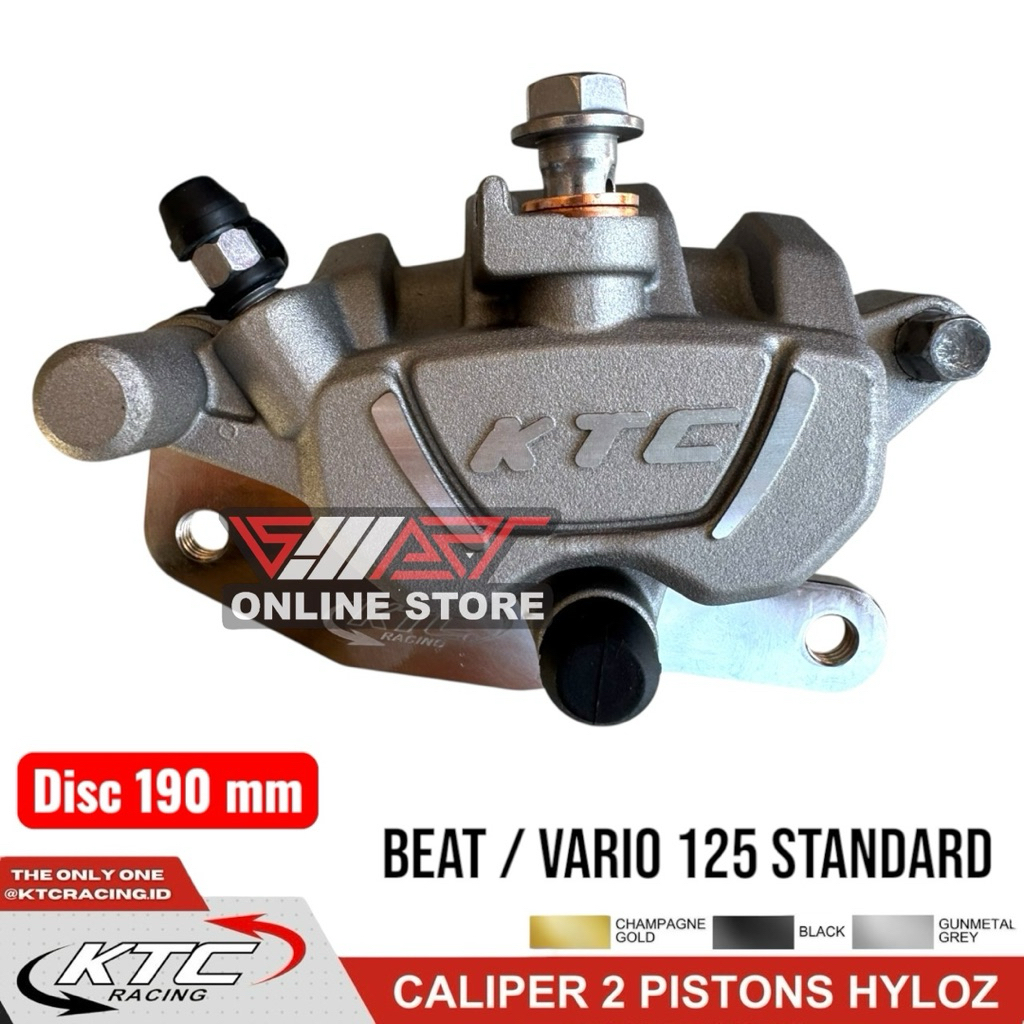 KALIPER DEPAN KTC RACING HYLOZ 2 PISTON BEAT / VARIO 125 DISC 190 MM ( STANDARD )