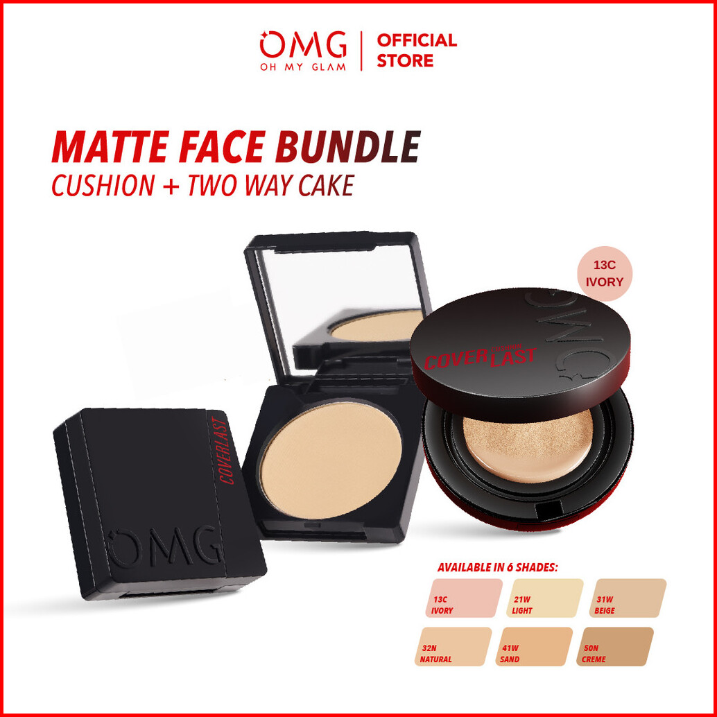 Omg Oh My Glam Glow Matte Face Bundle Cushion Two Way Cake - High Coverage Dewy Finish - Poreless Cushion