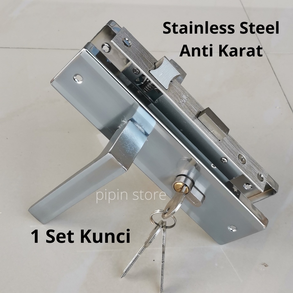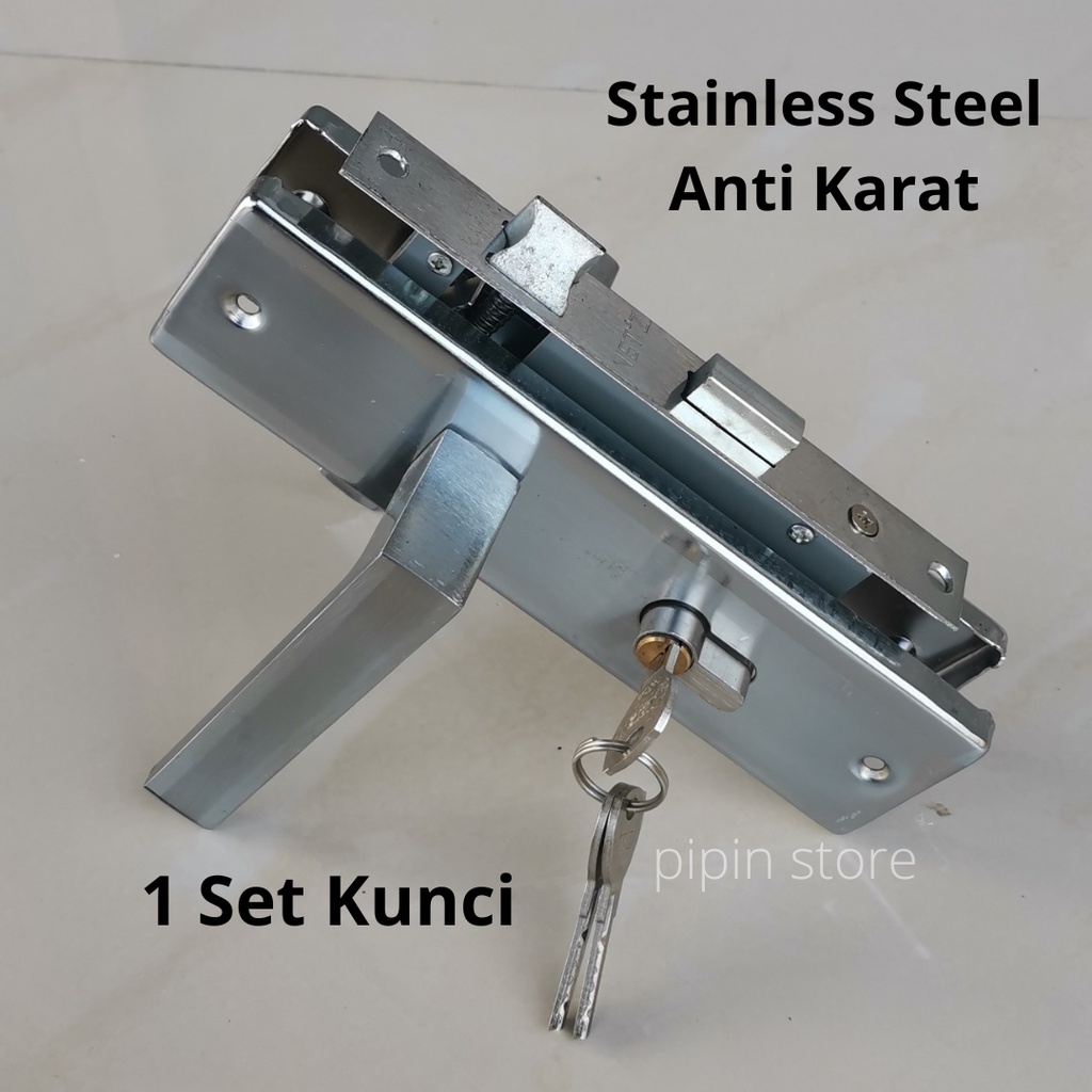 Kunci Pintu Rumah Besar Ukuran 25 cm 20 cm Gagang Handle Pintu Rumah Besar 1 Set Kunci Lengkap Body Kunci Ongkel Engkol Pintu Stainless Steel Murah
