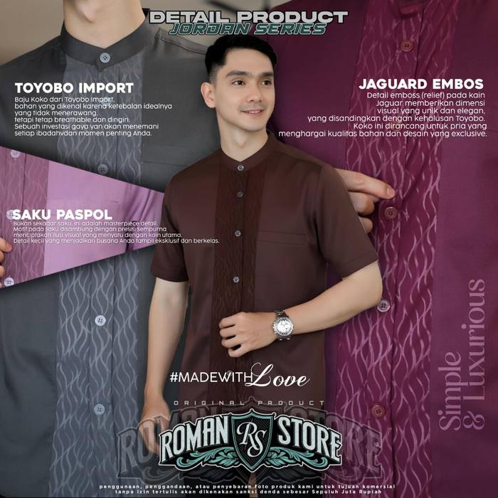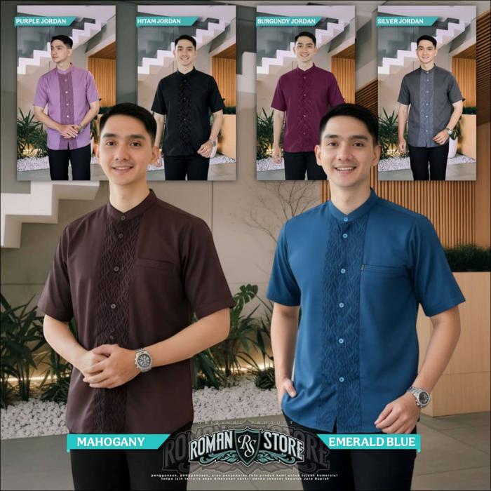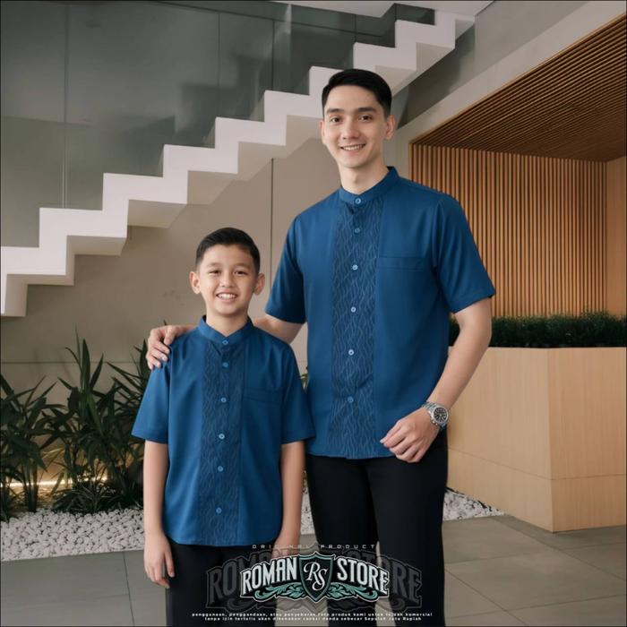 Baju Koko Couple Ayah Anak Laki Laki Emeral Blue Dan Mahogani Lengan Pendek Motif Jordan Bahan Toyobo Import Terbaru 202