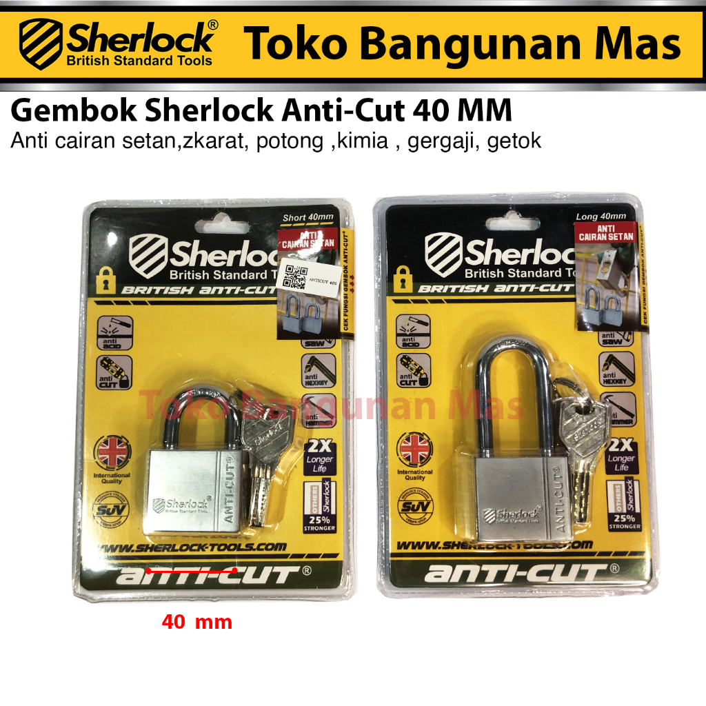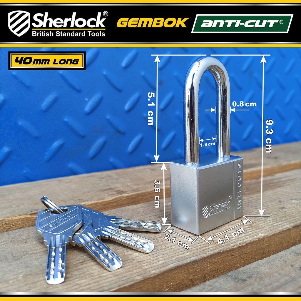 Gembok Sherlock ANTI CUT Kuningan 40 mm Panjang Pendek Anti Potong